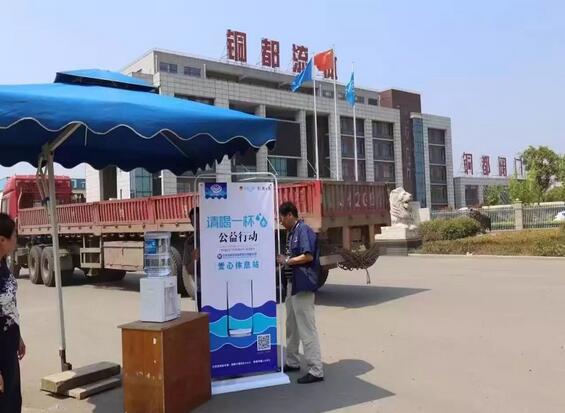 他們用汗水,方便了市民的生活、他們用汗水,洗去了城市的塵埃,因?yàn)橐獔?jiān)守崗位,甚至有時(shí)無法在口渴時(shí)喝一杯涼水,也無法在酷暑難耐時(shí)稍作休息。炎炎夏日,一杯清水對(duì)坐在辦公室的市民來說,是微不足道的,但是對(duì)高溫酷暑下的為戶外高溫作業(yè)人員來說,喝一杯清水在繁忙的一天中卻顯得如此奢侈。7月25日,共青團(tuán)銅陵市委、銅陵日?qǐng)?bào)社聯(lián)合發(fā)起"請(qǐng)喝一杯水"愛心公益活動(dòng)后,我公司立即響應(yīng)號(hào)召,在我公司大門口設(shè)立愛心崗?fù)?愛心休息站",為在烈日下工作的人們提供夏季的一絲涼意。